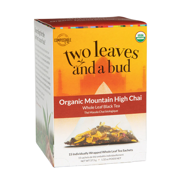 The foundation of our chai is top-quality, whole leaf black tea. Then we add whole spices like cinnamon, ginger, and cloves for a bold, yet balanced tea.